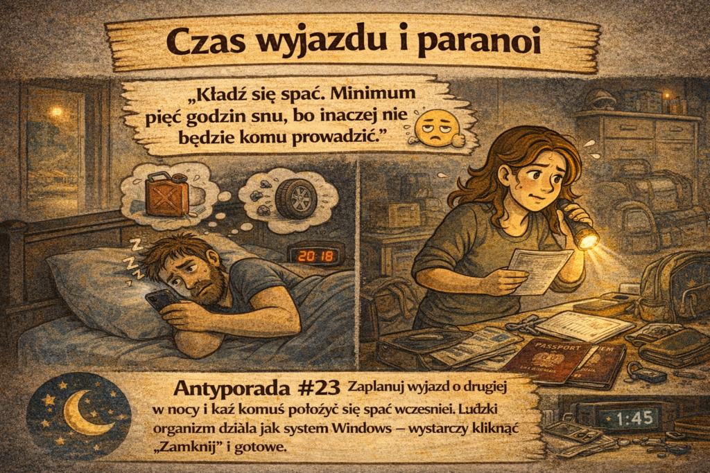 Antyporada #23: Zaplanuj wyjazd o drugiej w nocy i każ komuś położyć się spać wcześniej. Ludzki organizm działa jak system Windows – wystarczy kliknąć „Zamknij” i gotowe.