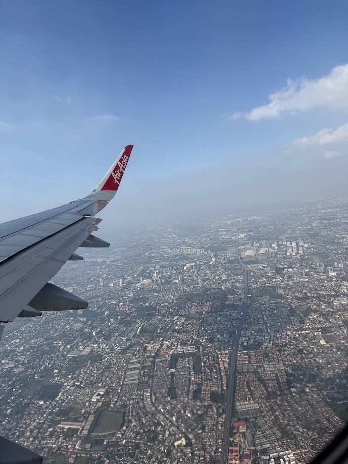 Kiedy samolot wznosił się nad Bangkok, patrzyliśmy przez okno na miasto, które nawet z dużej wysokości wygląda jak niekończący się labirynt. Beton, drogi, rzeka wijąca się jak rozlany atrament — Bangkok z góry jest gęsty, intensywny, niezmordowany.