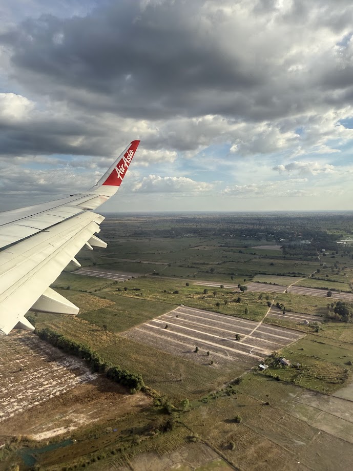 A potem, nagle jak po zmianie scenografii, pojawiła się Kambodża — spokojna, zielona, poprzecinana polami i brązowymi drogami, które wyglądały jak narysowane kredką.