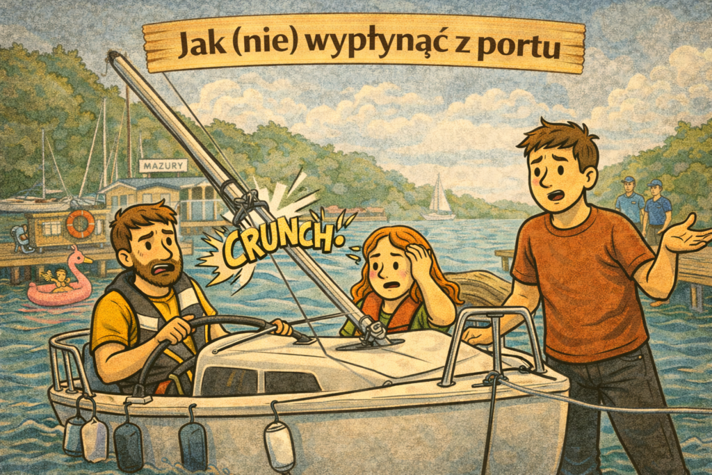 Instruktor zamarł. My nie wiedzieliśmy jeszcze, co się stało, ale jego mina sugerowała, że jesteśmy o krok od wycieczki do serwisu – i to pieszo. W milczeniu oddał mi ster, kazał mężowi zejść pod pokład „dla stabilizacji” (albo żeby nie przeszkadzał) i zawrócił do portu.