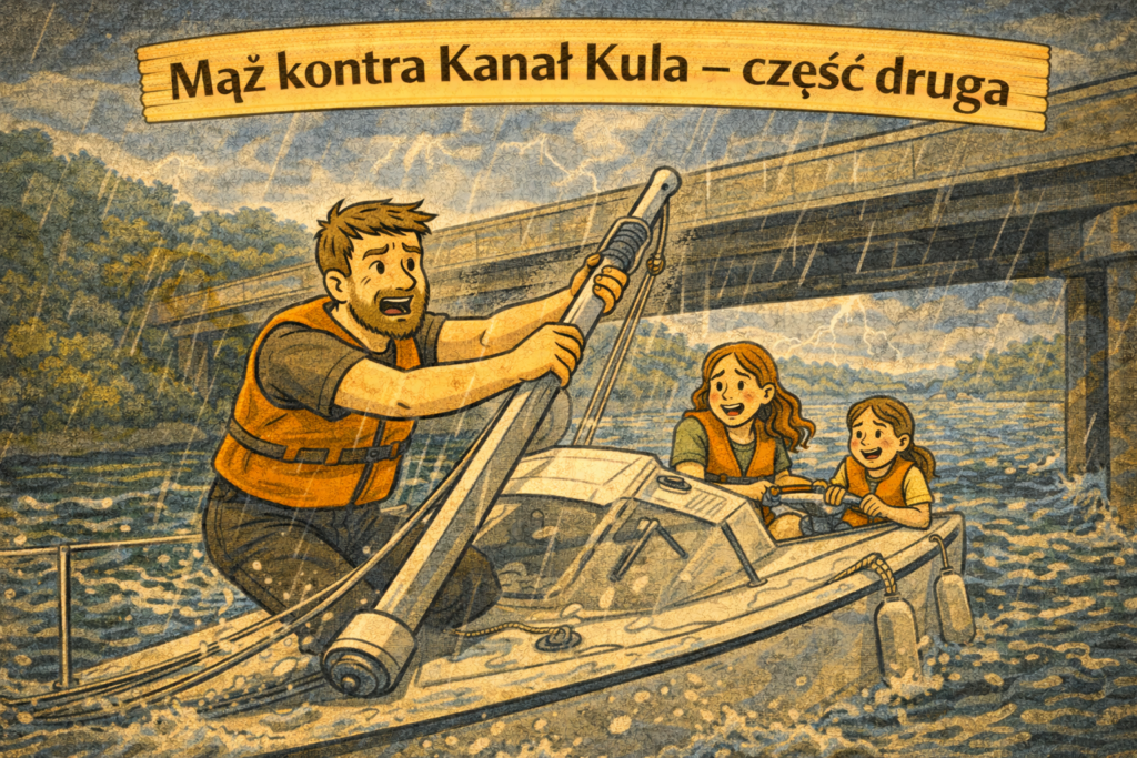 Antyporada #64: Jeśli twój mąż ogłasza decyzję żeglarską tonem admirała – nie dyskutuj. Po prostu zapnij kapok i przygotuj się na składanie masztu w deszczu, wichurze albo psychicznej burzy. Któraś z nich zawsze nadciąga.